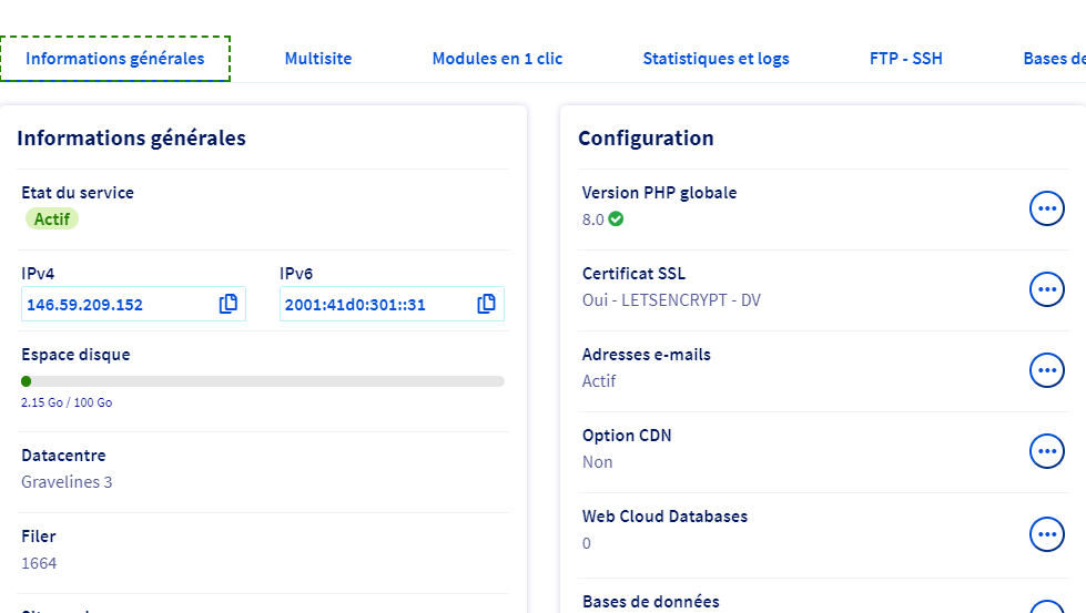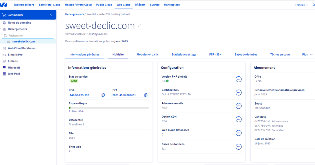 Dans OVH>webcloud>multisite cliquer sur action ajouter un sous domaine