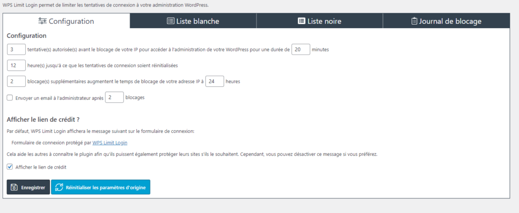 Passer de 20 min à 1500 min, passer de 12 h à 90h, passer de 24h à 90h, déactiver la case afficher le lien de crédit