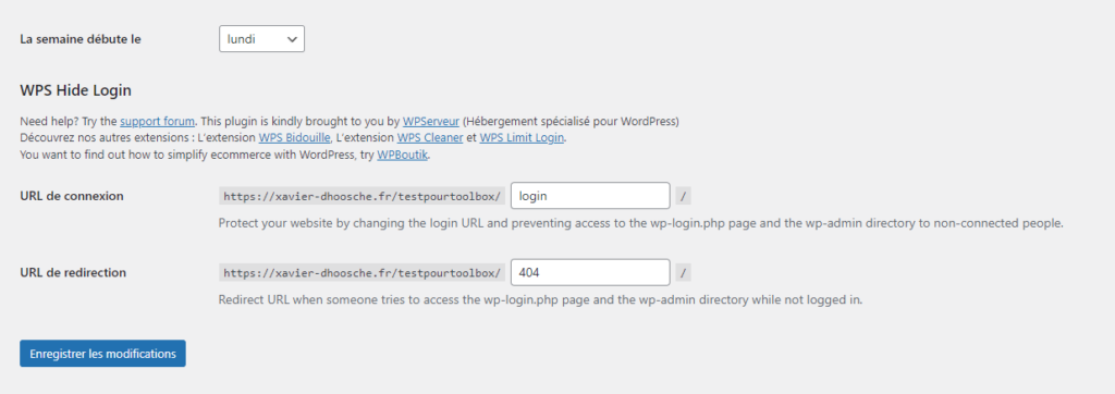 URL de connexion page d’accueil accessible via wp-admin changé par ce que l’on veut ex adressesecrete