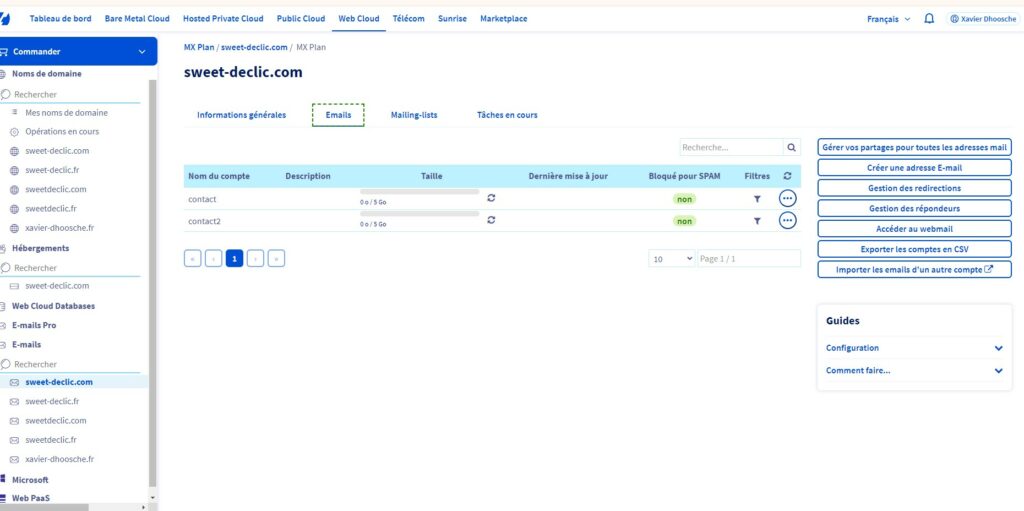 Emails> nom de domaine avec adresse mail dispo>email>creer une adresse mail
