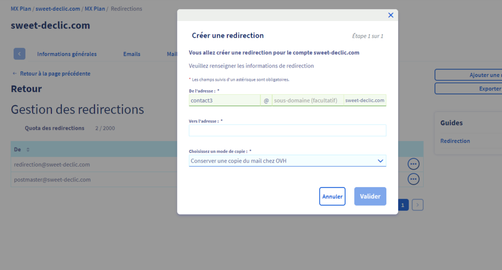 le mail de redirection n’est pas une boite mail il s’agit uniquement d’une adresse que l’on peut communiquer pour faciliter la compréhension des clients ou utilisateurs