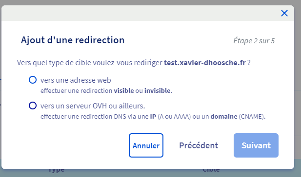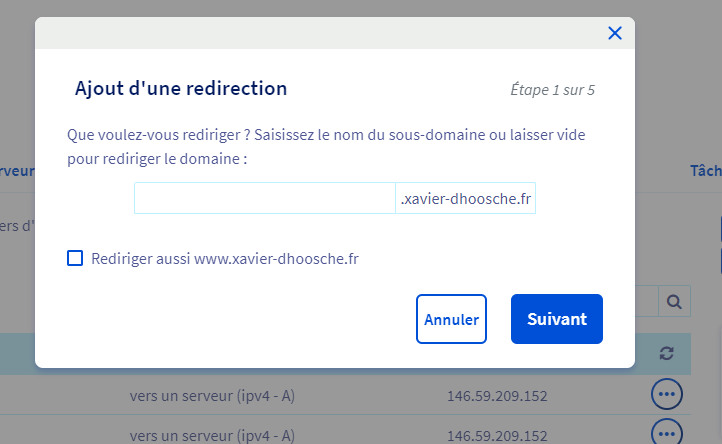 Rentrer le nom que l’on souhaite ex drive pour avoir l’adresse: drive.xavier-dhoosche.fr puis cocher aussi WWW