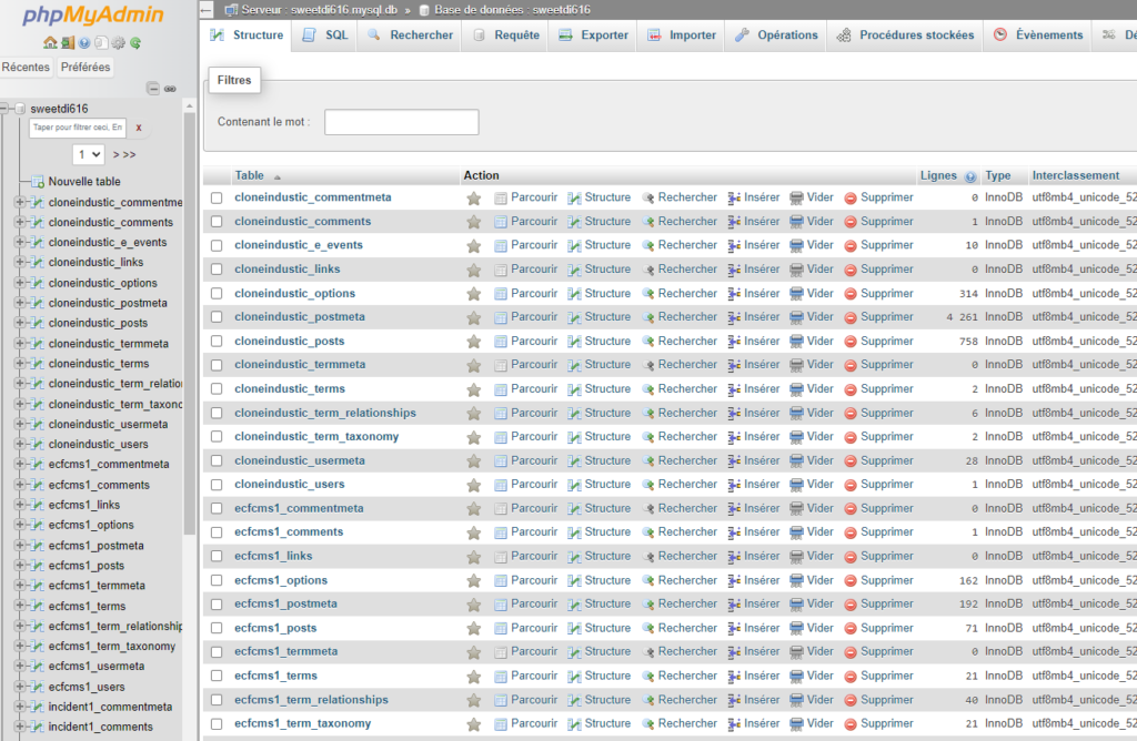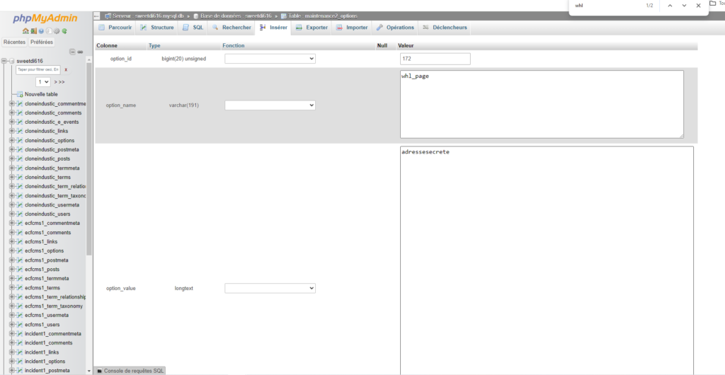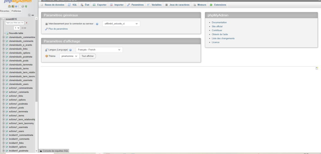 Se rendre dans php admin