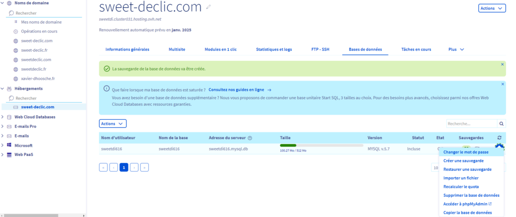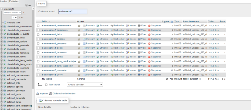 Double clic sur la base de données en haut à gauche Sweetdi616