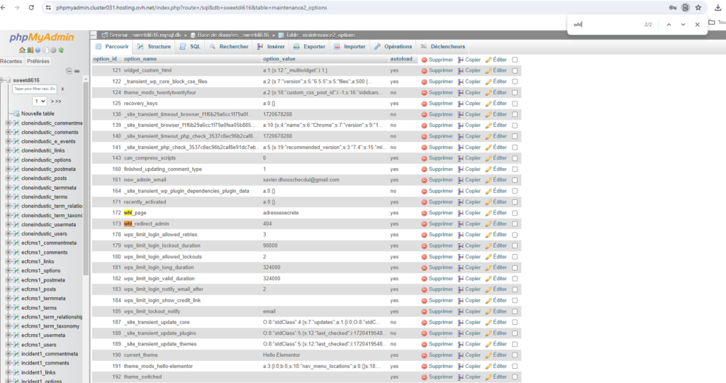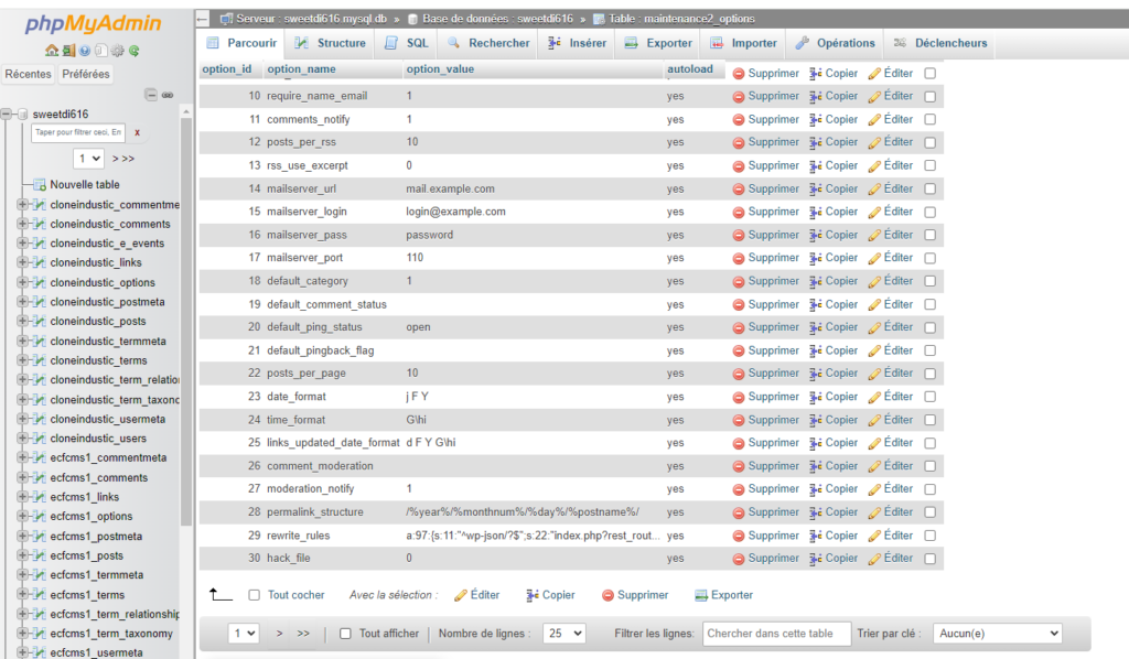 double clic sur la table préfixe_option