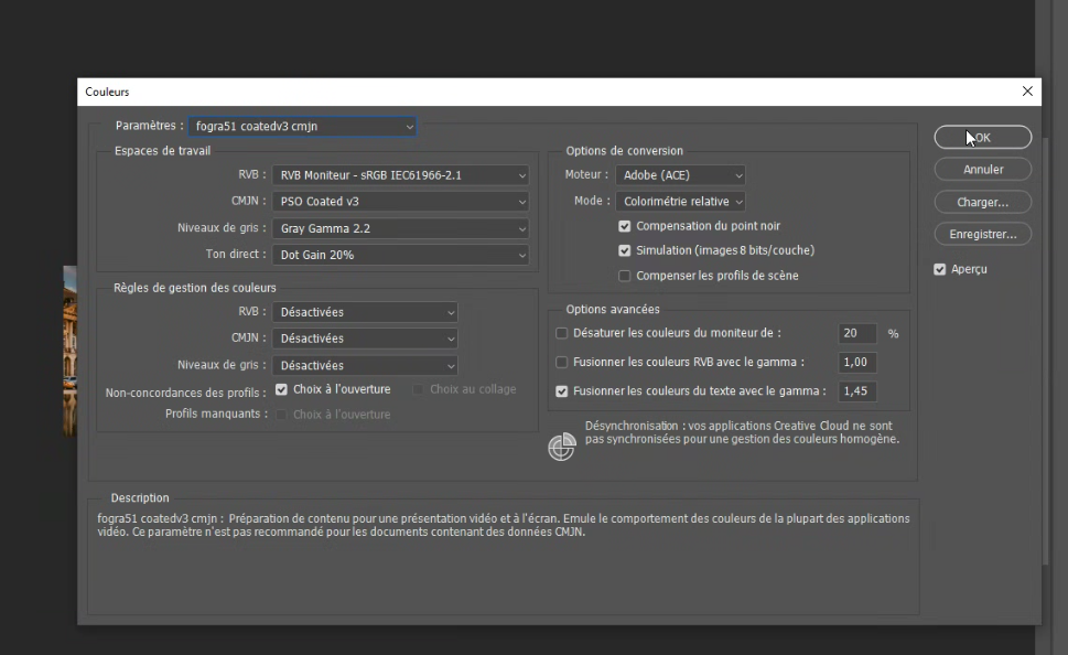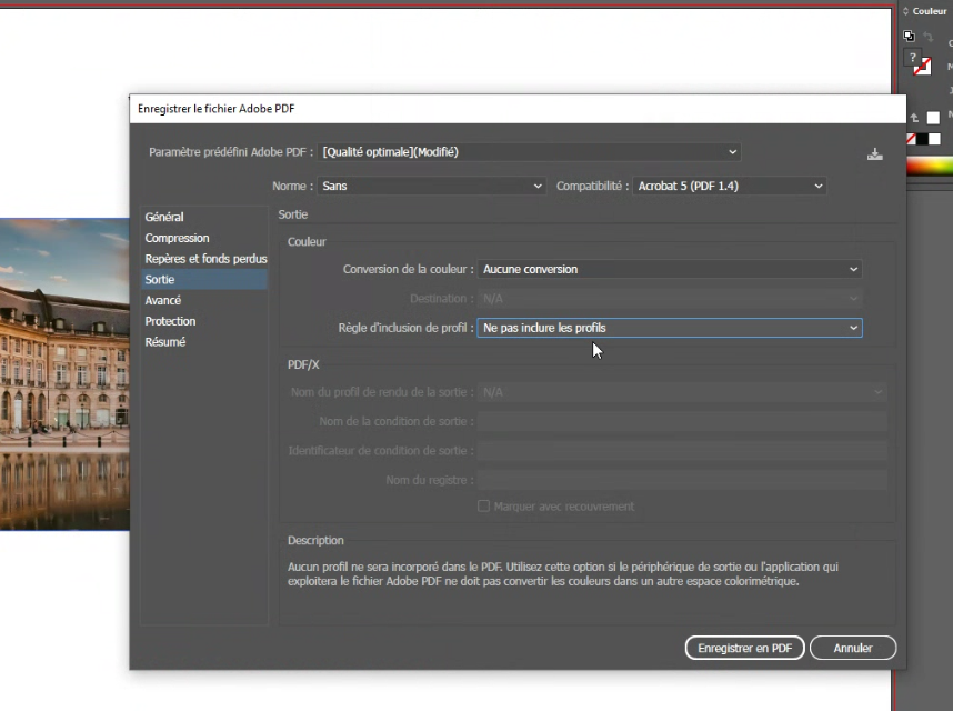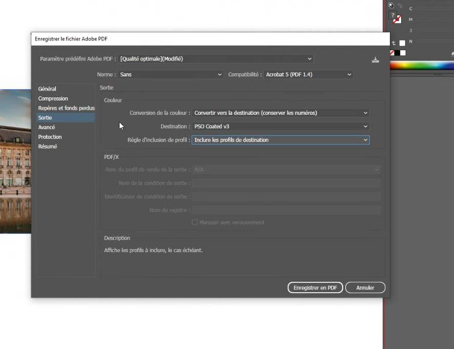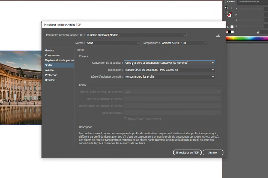 Sortie préféré selectionner le profil plûtot que d’utiliser ceux proposé par adobe ex coated V3 plutôt que CMJN coated V3