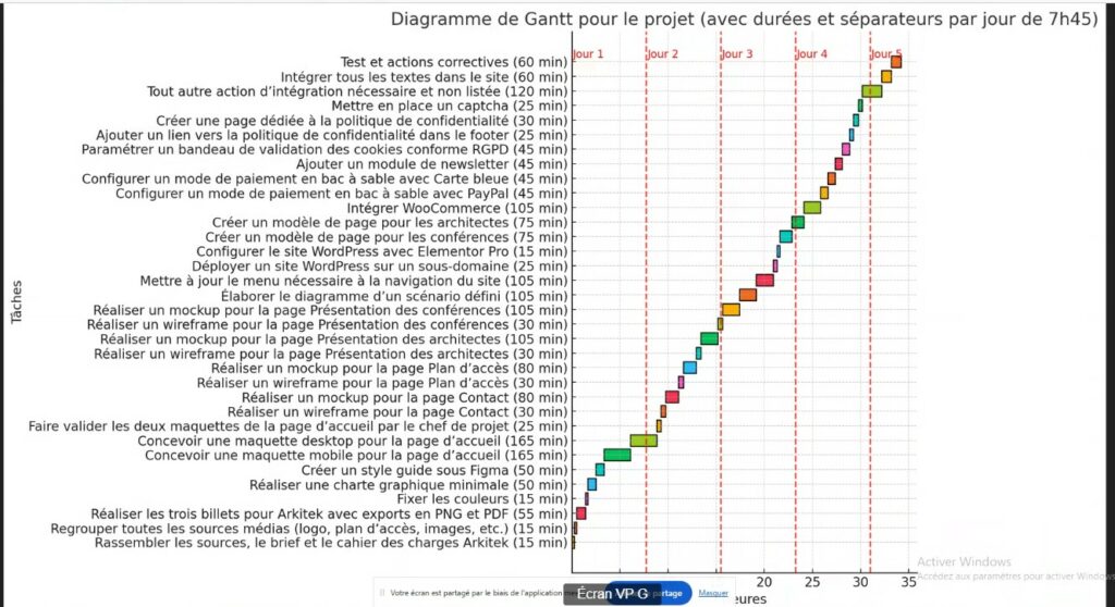20 à 30 minutes de questions souvent sur le projet. Attention back office et mots de passe, LE jury accepte que l’on se plante préparer la justification.