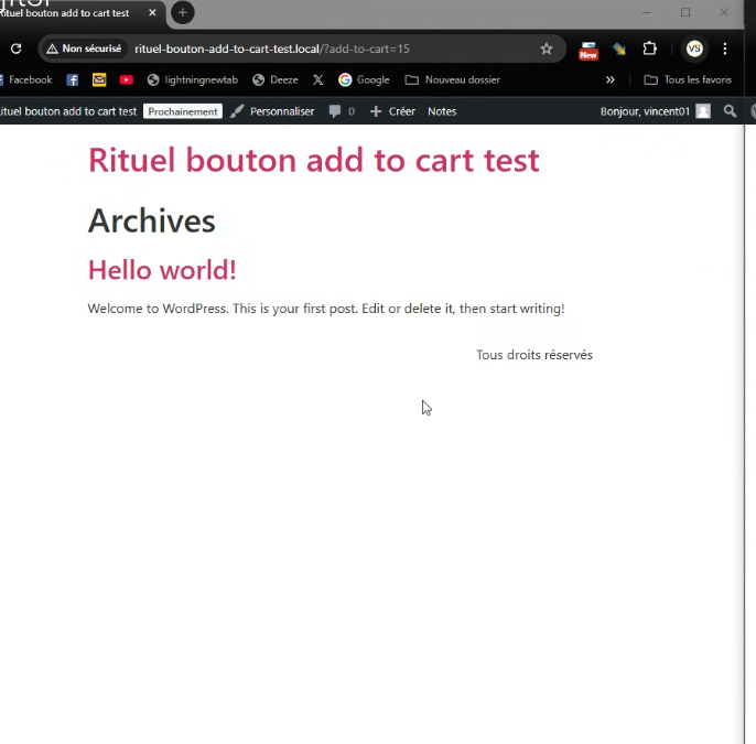 un produit=ID qui envoi une fonction lien avec paramètre caché qui se met dans l’url avec la fonction add to card. Sur woocommerce on peut régler l’action post panier à régler.